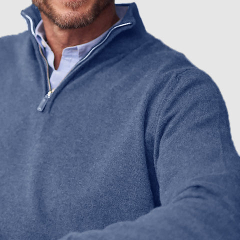 It may feel as soft as loungewear, but with so many exquisite details, this is one sharp sweater. Pair our cashmere three-quarter zipper staple with your favorite formal shirt for casual comfort. Experience legendary luxury with the ancient craftsmanship of Scottish yarns. Zip it up for cooler evenings. Its versatility will last you all season long.