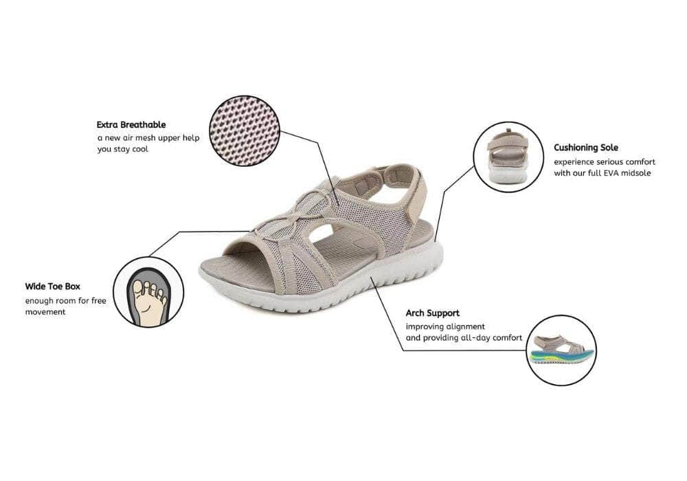 IMPROVED STABILITY | BUILT-IN ARCH SUPPORT | BREATHABLE AGAINST SUMMER HEAT