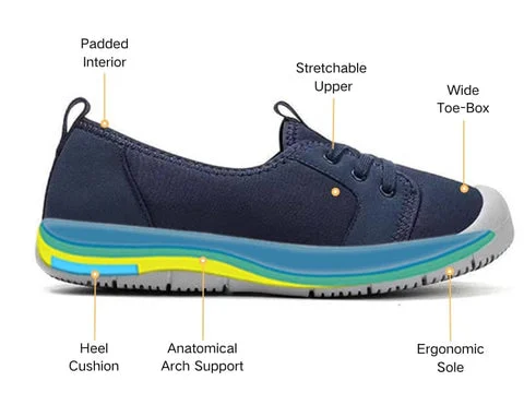 - Eliminating Arch Tension - This flexible orthopedic sole withstands the stress imposed to provide cushioning for fulfilling comfort.